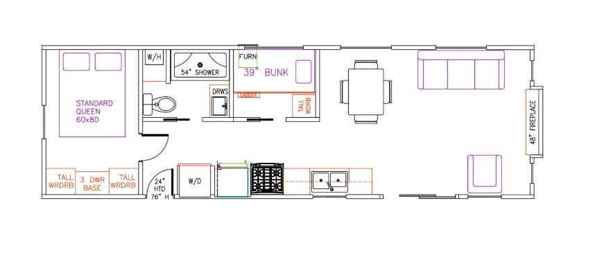 This floor plan is a custom made floor plan made especially with the Ontario campgrounds in mind! Only 37.5 feet long which fits the length requirement of many campsites!