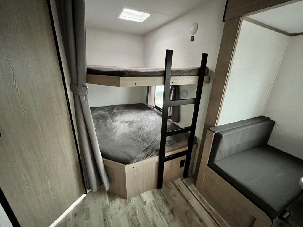 Double Bunks, Double Comfort — Full-size rear bunks sleep kids or guests with ease, each rated for 250 lbs.