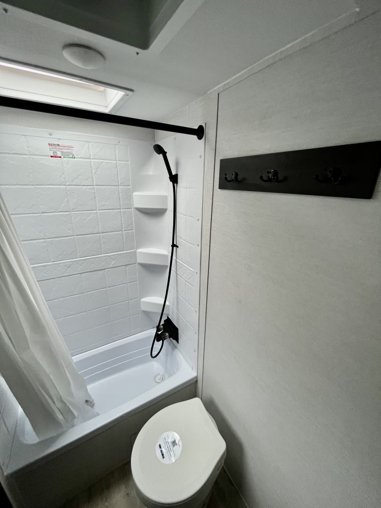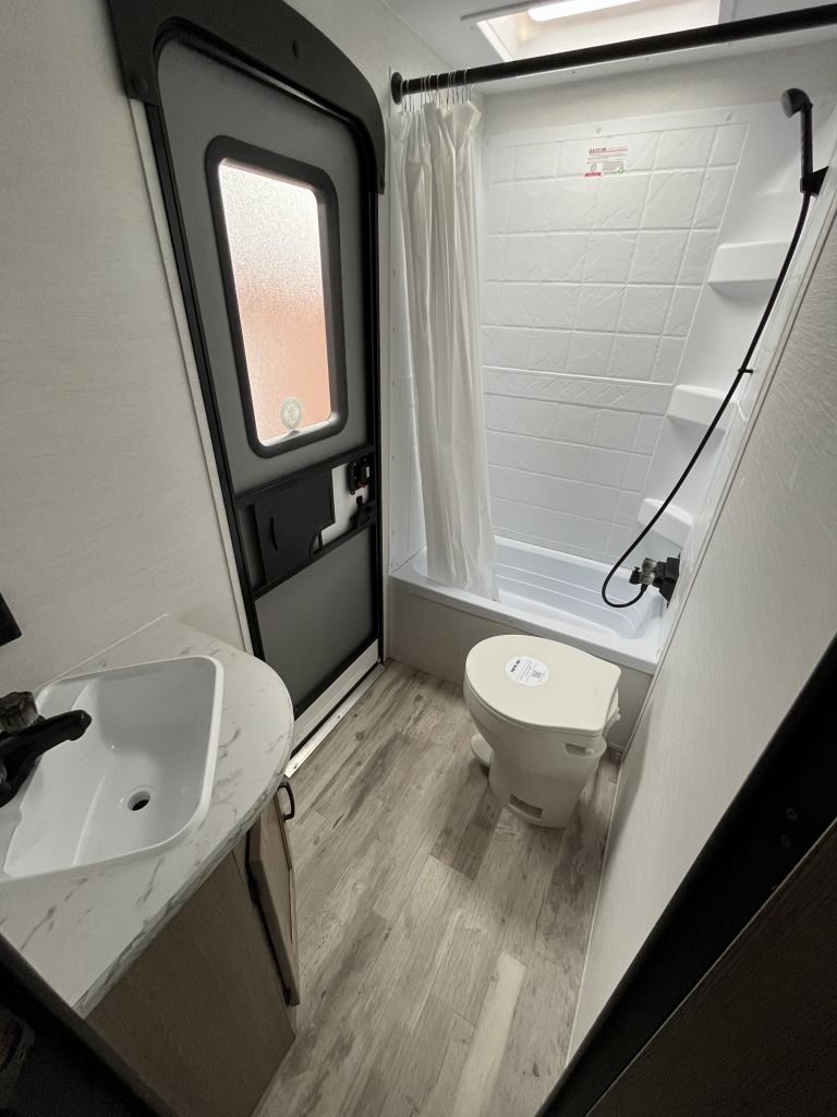 Standard features like a tankless water heater, exterior shower, and Bluetooth soundbar make every trip smoother.